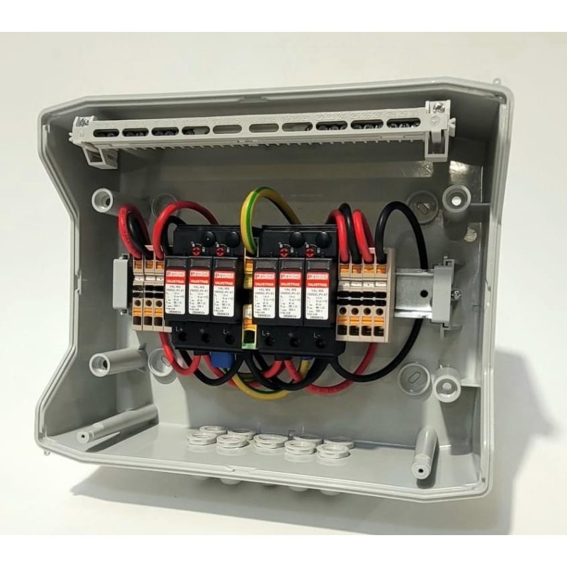 Rozdzielnica AVIA Solar RDC02P / N12M / T2 Це надійне рішення, яке відповідає всім вимогам встановлювачів ПВ та інвесторів, які шукають безпечні та сумісні з стандартами компонентів для фотоелектричних систем від 2 MPPT. Завдяки використанню компонентів топ-класу він забезпечує повну безпеку та дотримання поточних стандартів ЄС. Його можна встановити за межамиі всерединіЗавдяки твердому, Ультрафіолетовий корпус IP65.