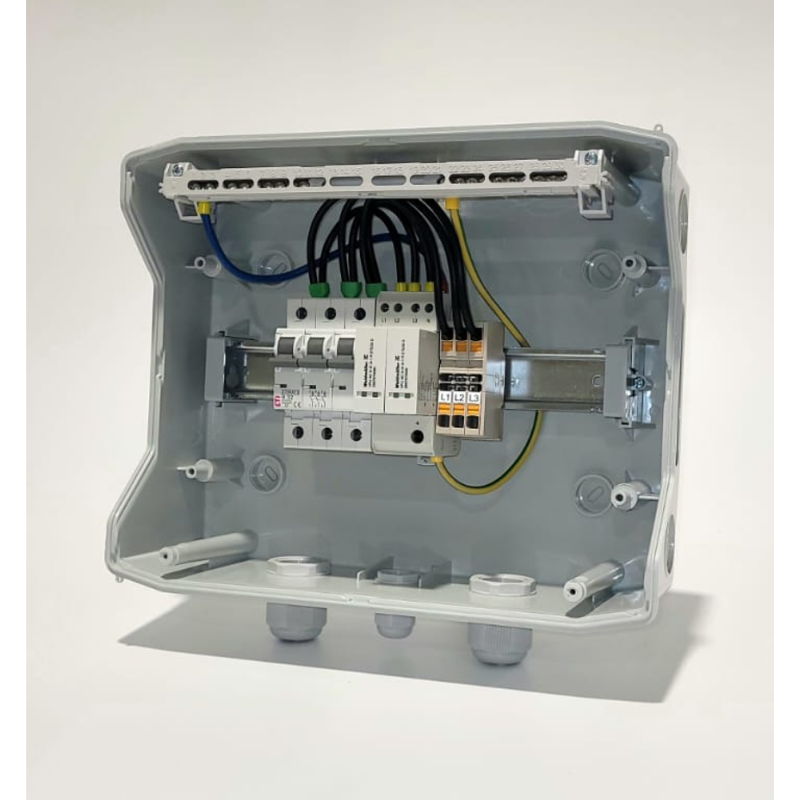 Комутатор комутації T2 для додатків у фотоелектричних установках. Коробка має ультрафіолетовий опір, адаптований для зовнішнього збору та в приміщенні.